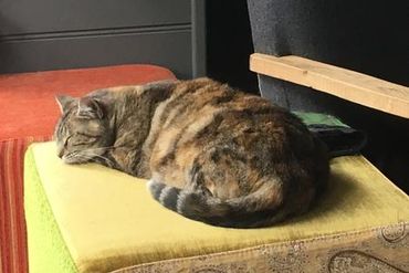 After we moved in, a small cat with kittens adopted us. She had been dumped on the balcony of the old lady next door. The Saunders Street Clinic staff adopted her, had her de-sexed and vaccinated and have cared for her ever since. She is now called Martha Saunders and wanders around the building at will.