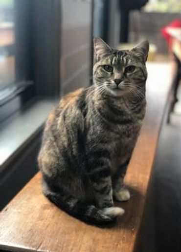 A little black cat, named BC, followed her home one day. Initially very timid, he is now at home here, and the staff adopted him as well. He has also been de-sexed and vaccinated.